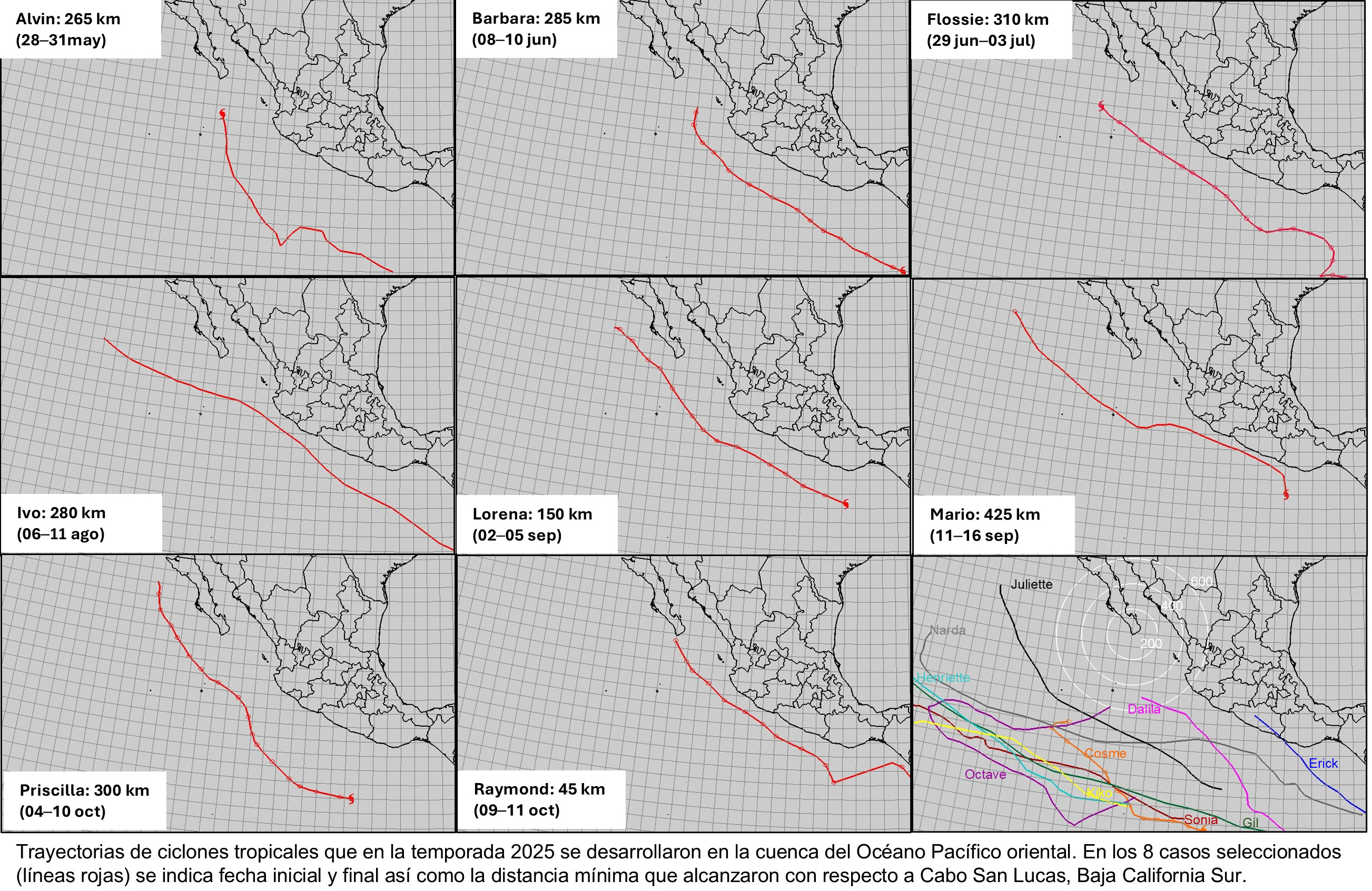 precipitación correspondientes a cada uno de los meses del año 2025. Con la información